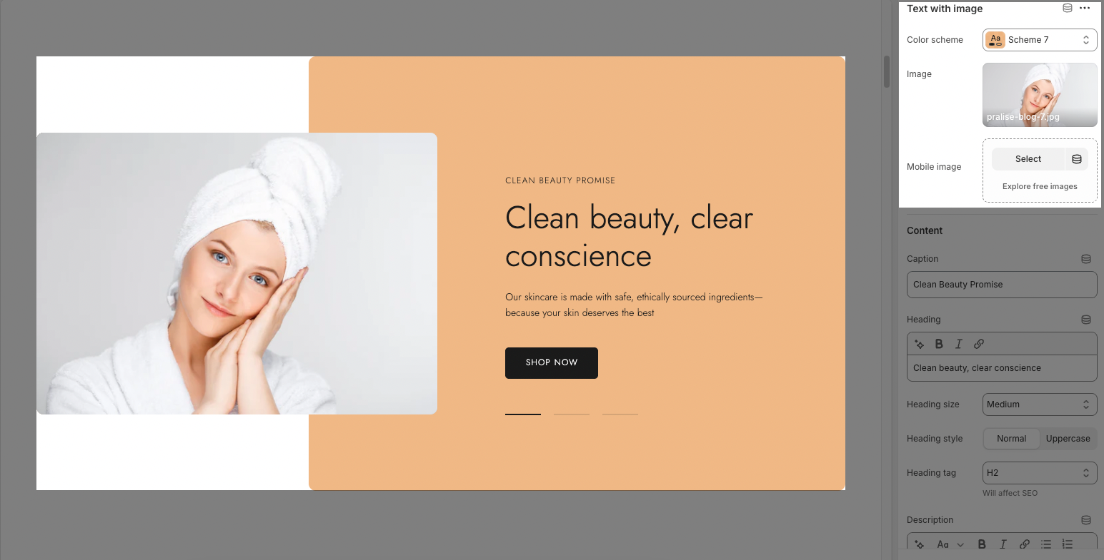 Mobile image: This is the image specifically used for mobile devices. If you don’t select a mobile image, the desktop image will be used by default on mobile.