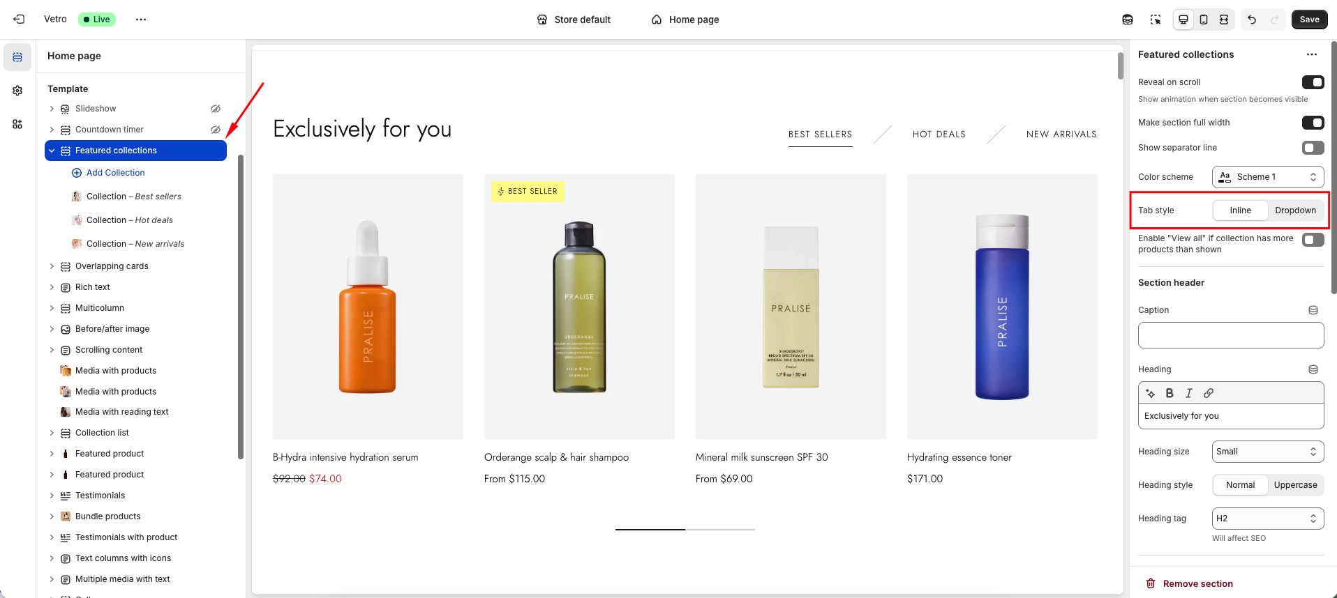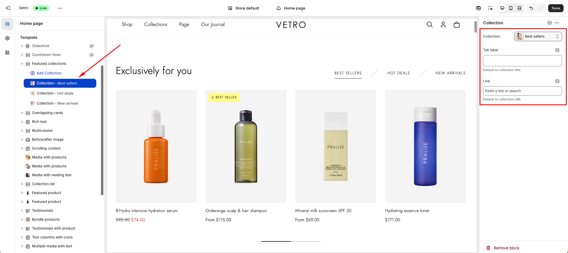 Click the ➕ Add Collection button inside the Featured Collections section.