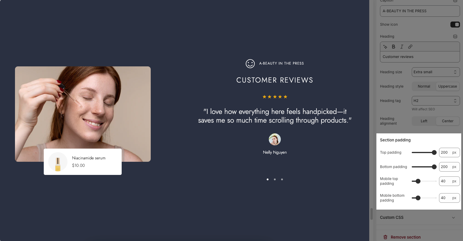 In this guide, you’ll learn how to customize this section to highlight customer voices and enhance your brand story.