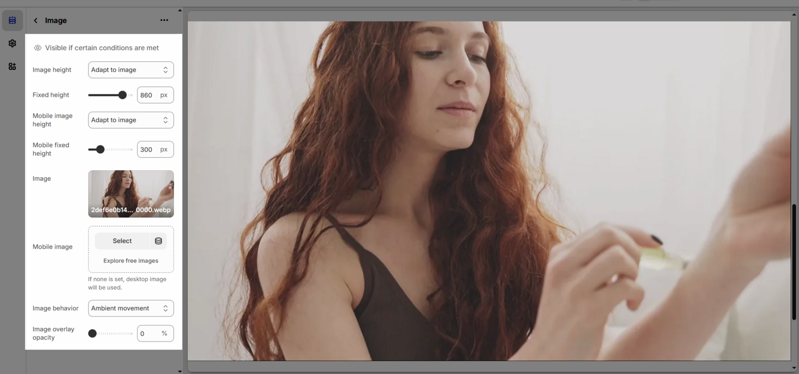 Image behavior: Choose the motion effect for the image when the user interacts (None, Ambient movement, Parallax)