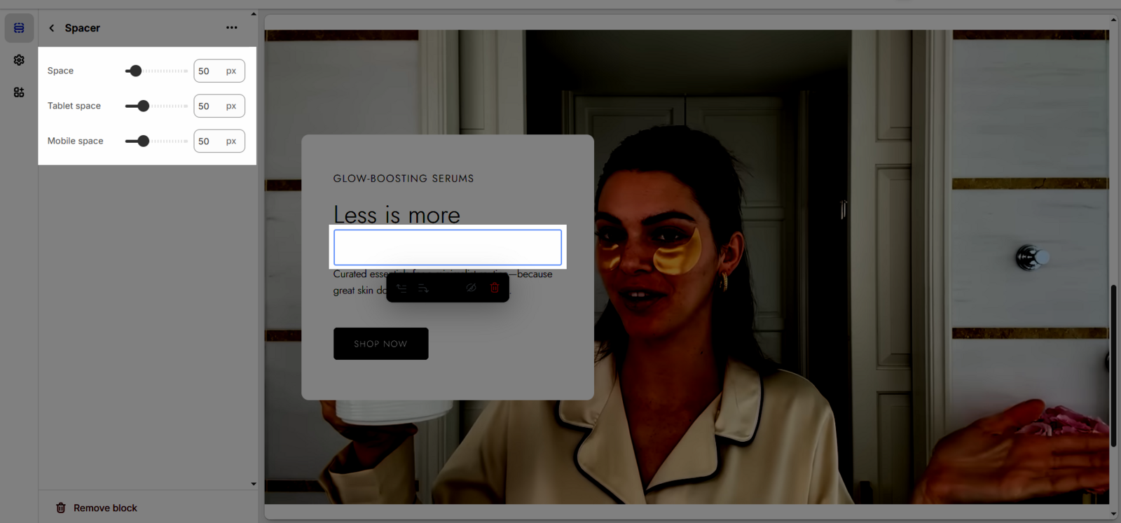 Once the Spacer block is added, you can customize its settings in the left or right-hand sidebar (depending on your screen size)