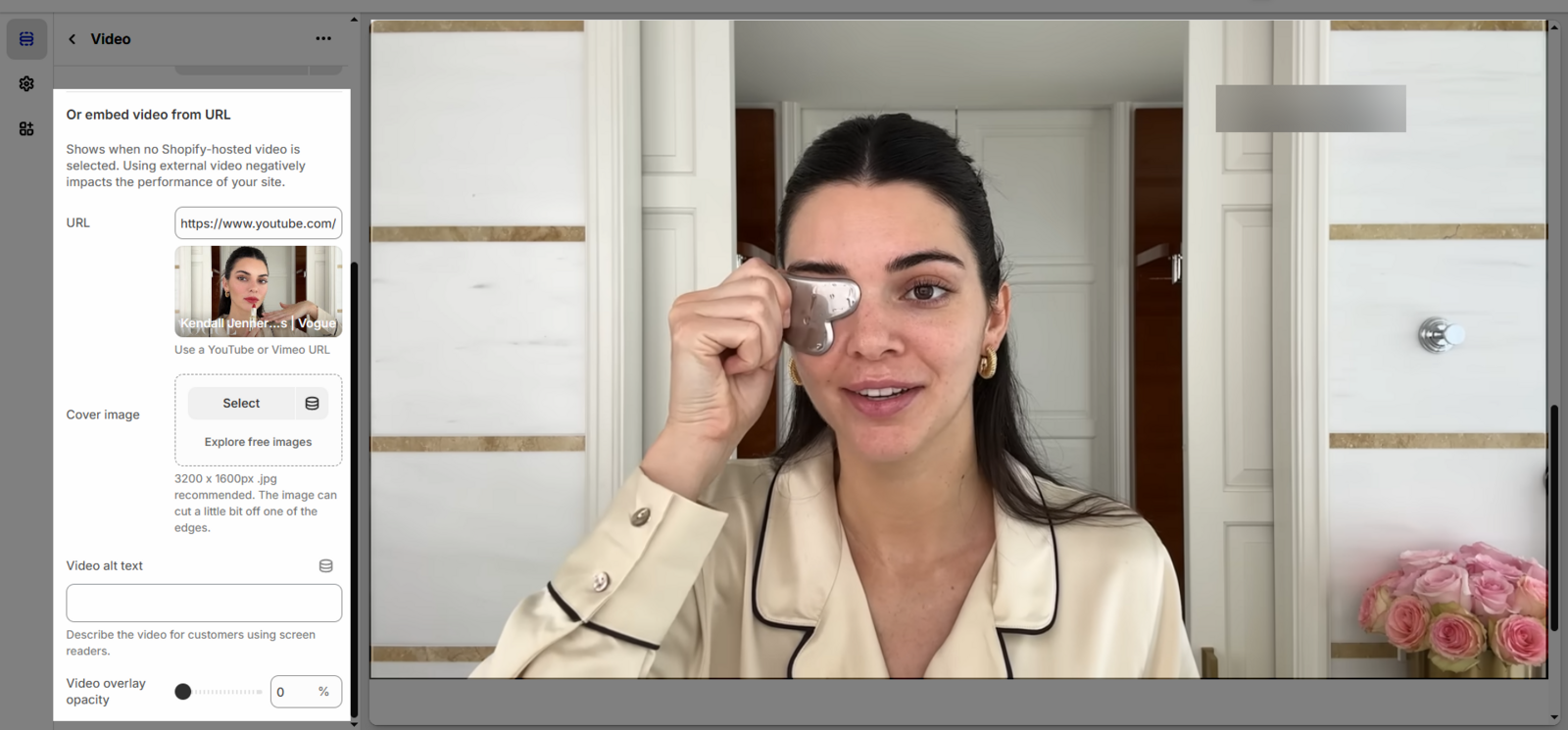 Shows when no Shopify-hosted video is selected. Using external video negatively impacts the performance of your site.