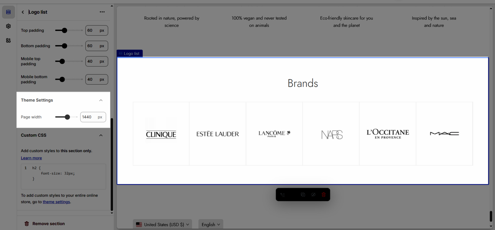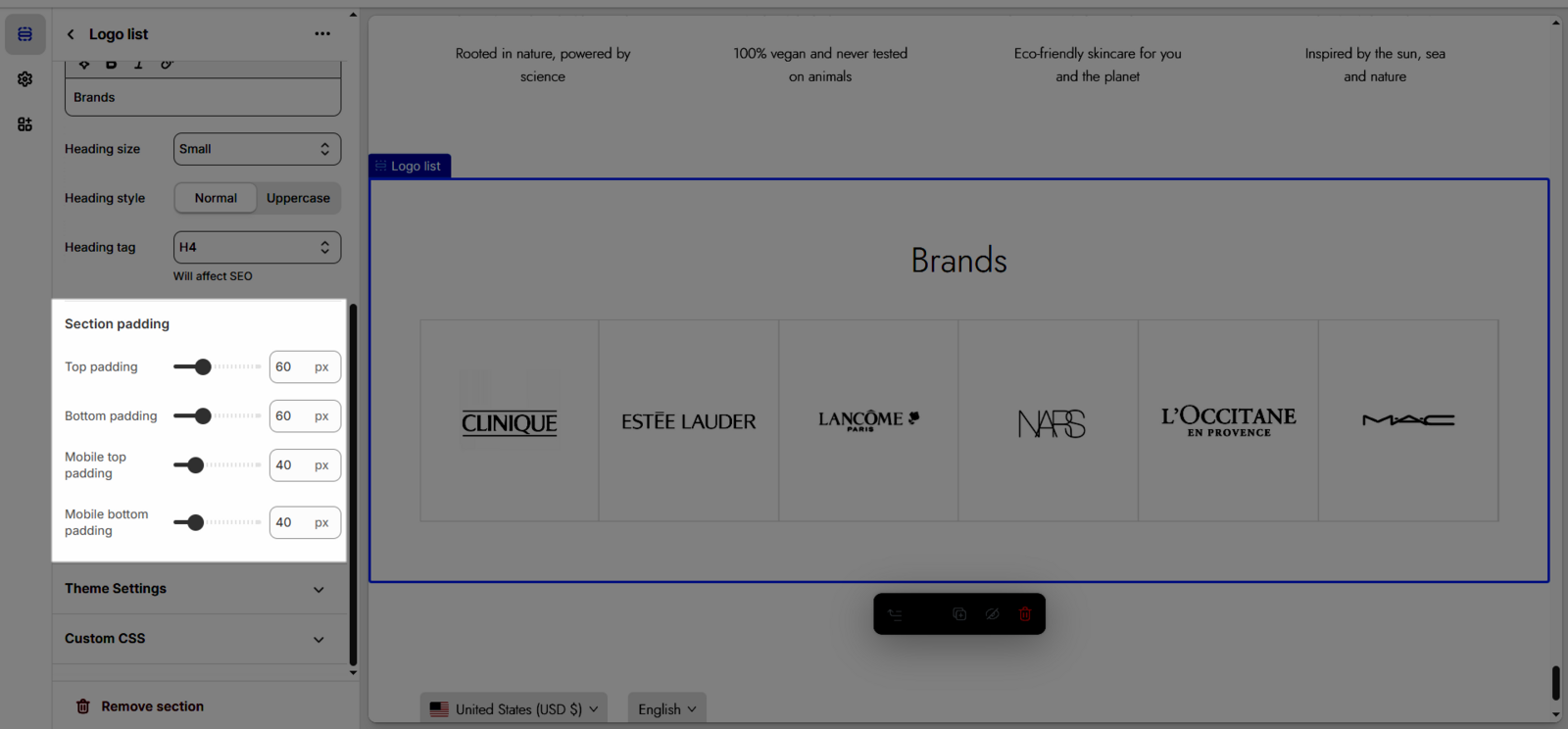 Once you add the Logo list section, you can customize its settings in the left or right sidebar (depending on your screen size)