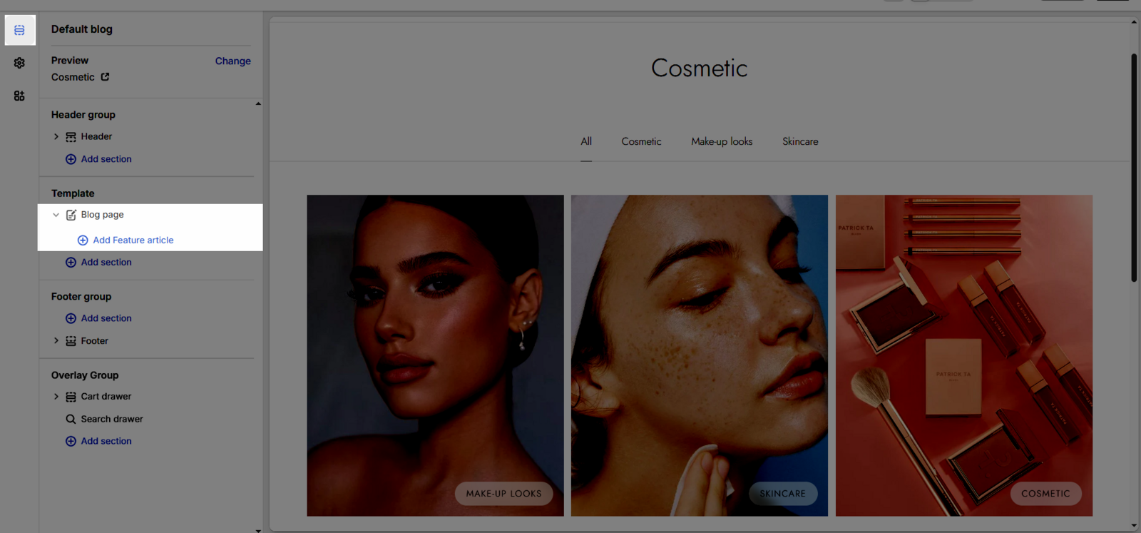 Step 03: In the Sections tab > scroll and find Blog page in Template