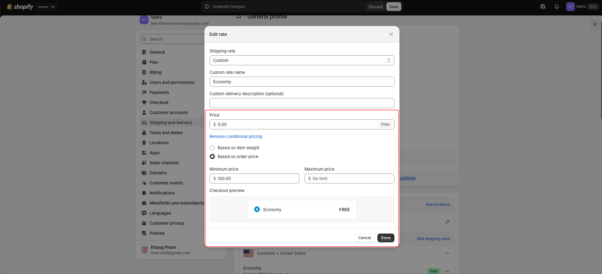 Minimum order price: Enter the amount required for free shipping (for example: $100)