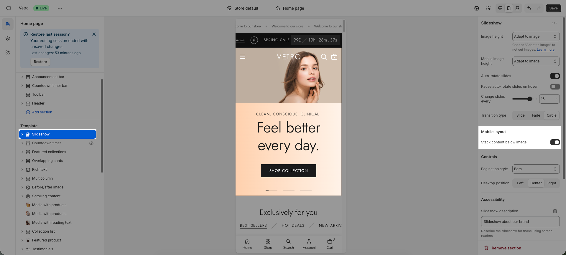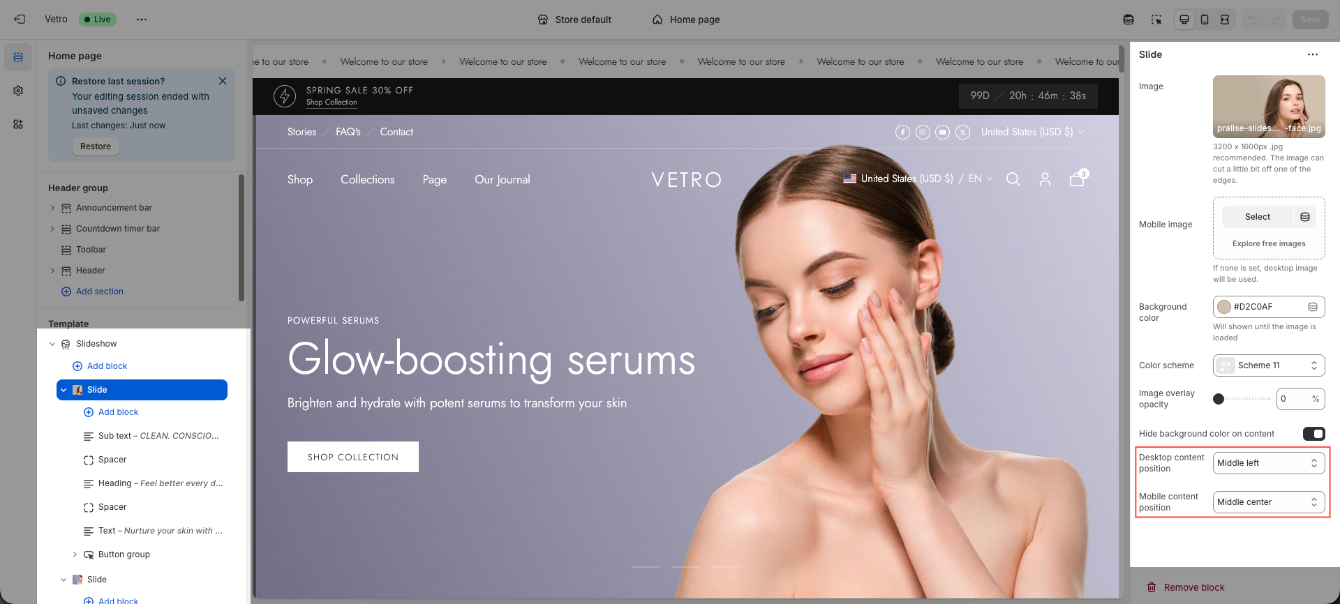 The slideshow allows you to showcase images, text, and buttons in a visually engaging way. This document will guide you how to configure this section.