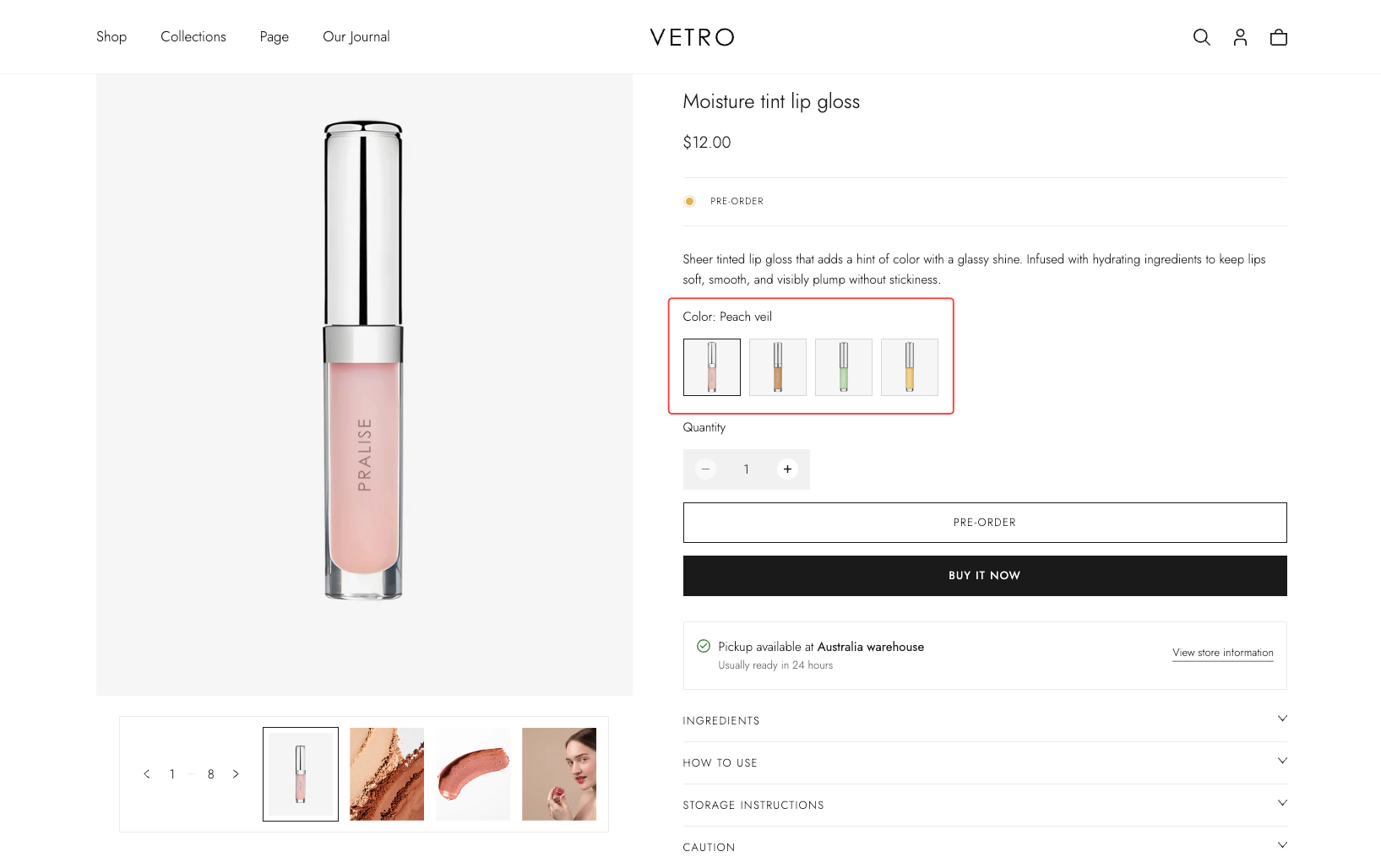 The Variant Swatches feature allows product variants (images or colors) to be displayed visually on the product page, helping customers compare and select options faster than using Shopify’s default dropdown or block list.