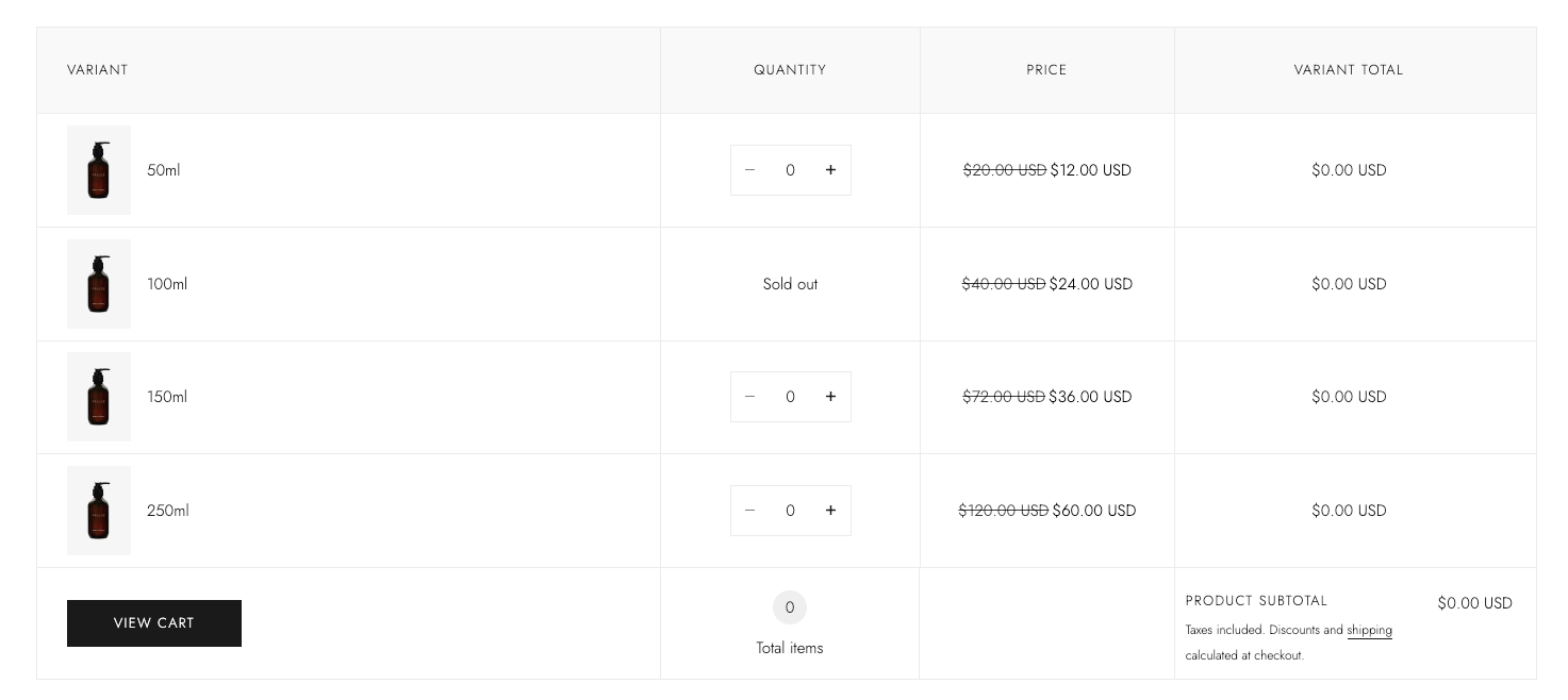 Variants per page: If your product has many variants, you can set the number of variants displayed per page.