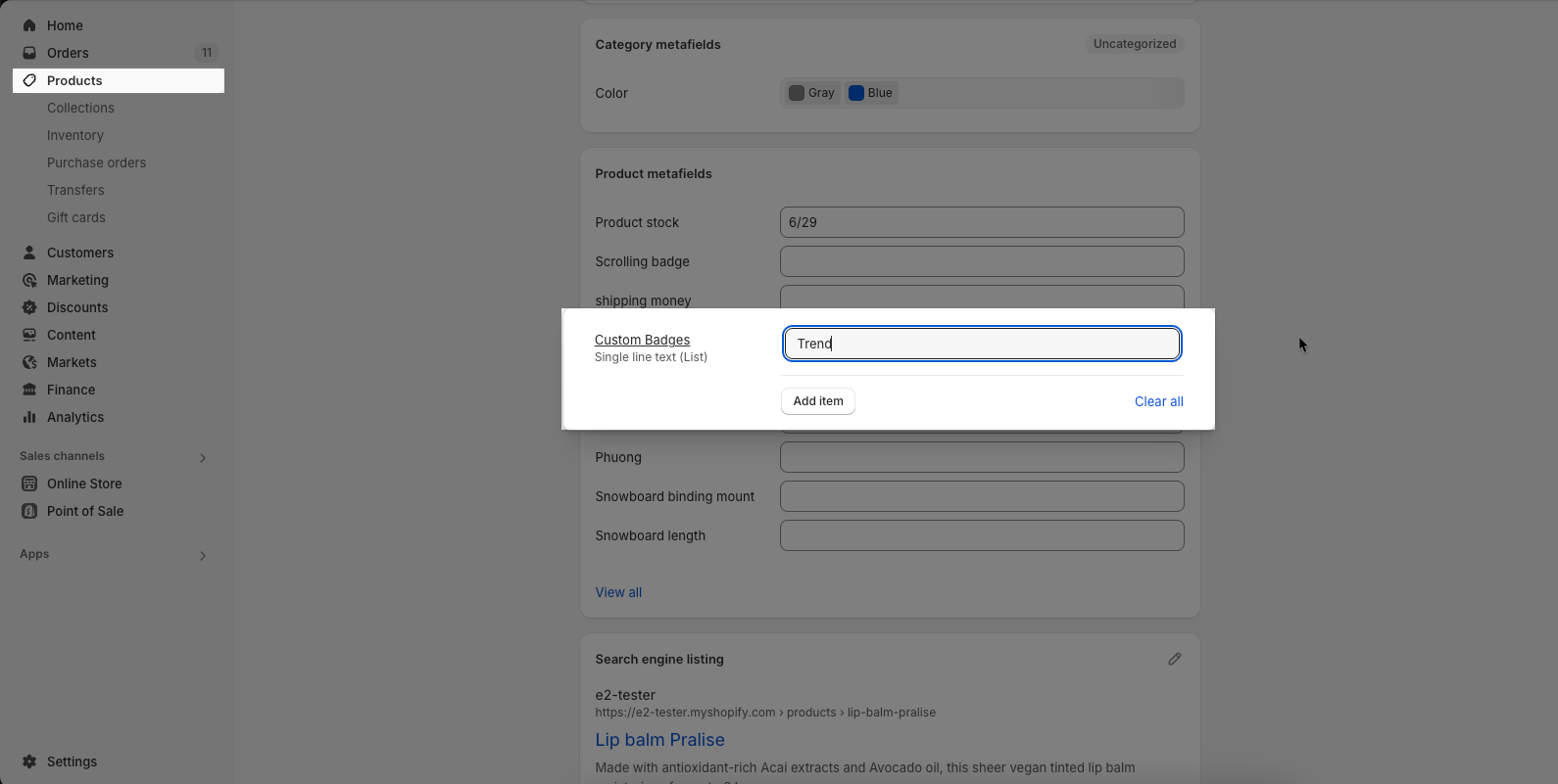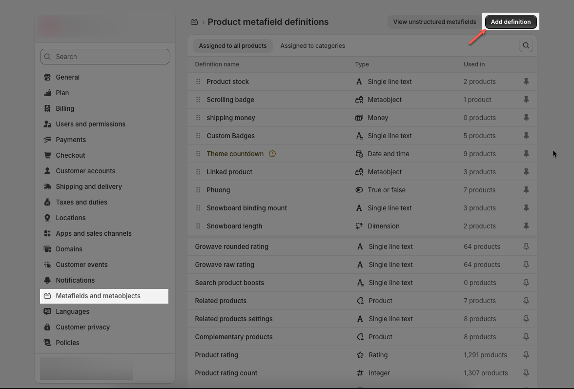 Step 1: To set up custom badges, go to Settings > Metafields and metaobjects > Products > create a metafield with the following options: