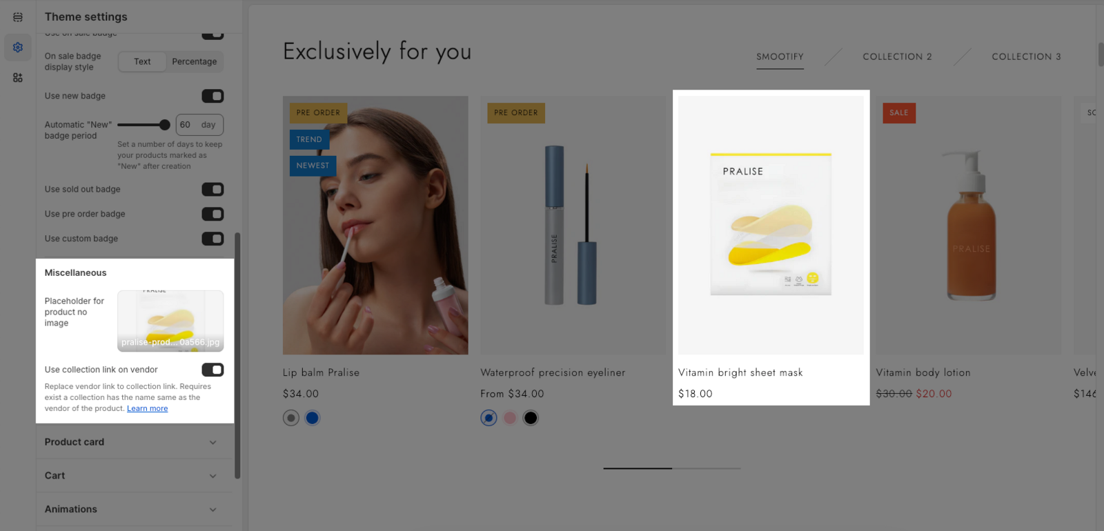 This product settings section provides a powerful set of tools to customize how products are displayed across your entire site. You can tweak everything from badges, Miscellaneous to how details like variation information are displayed.