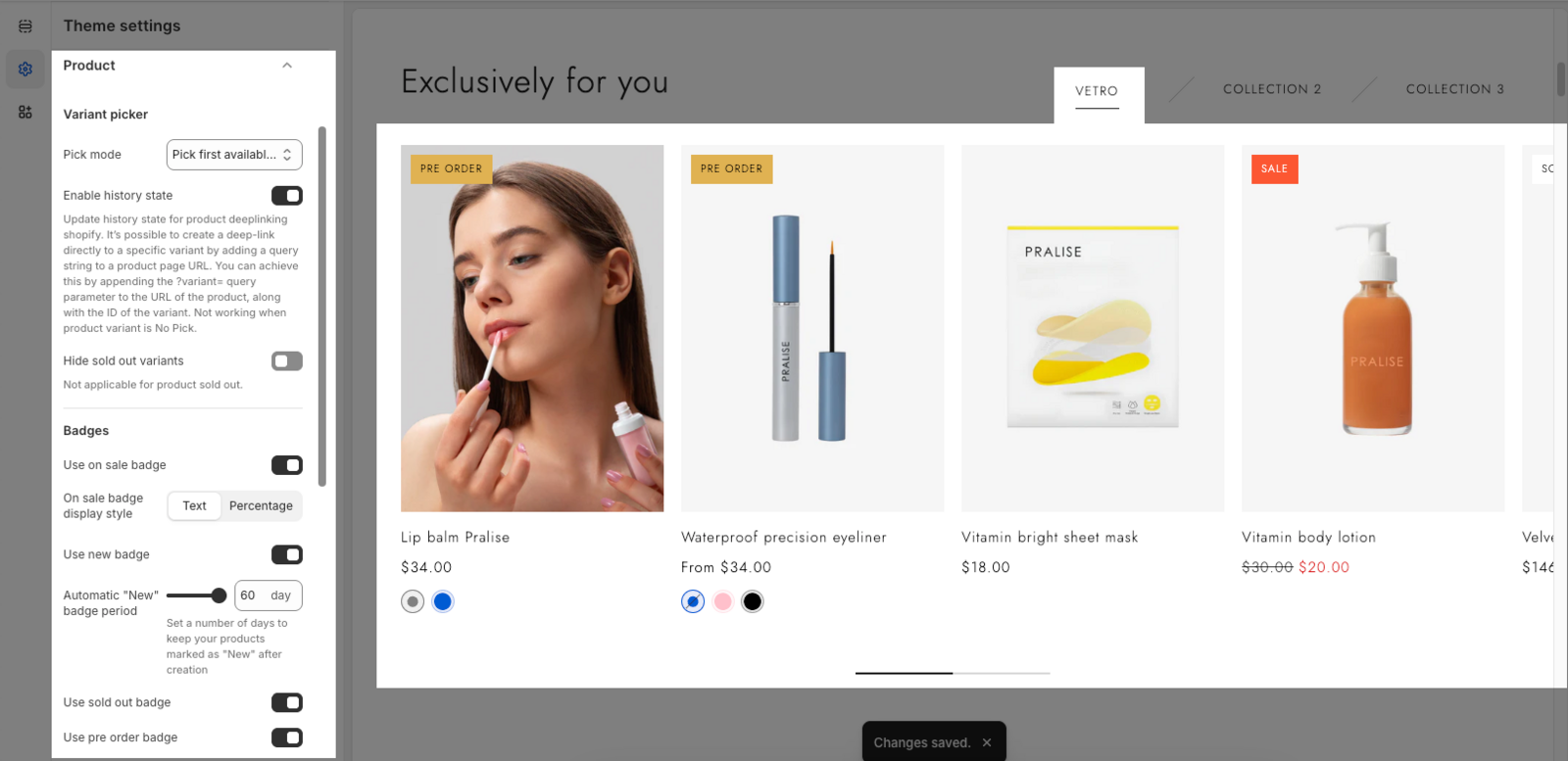 Use sold-out badge: Displays a badge on products that are out of stock.