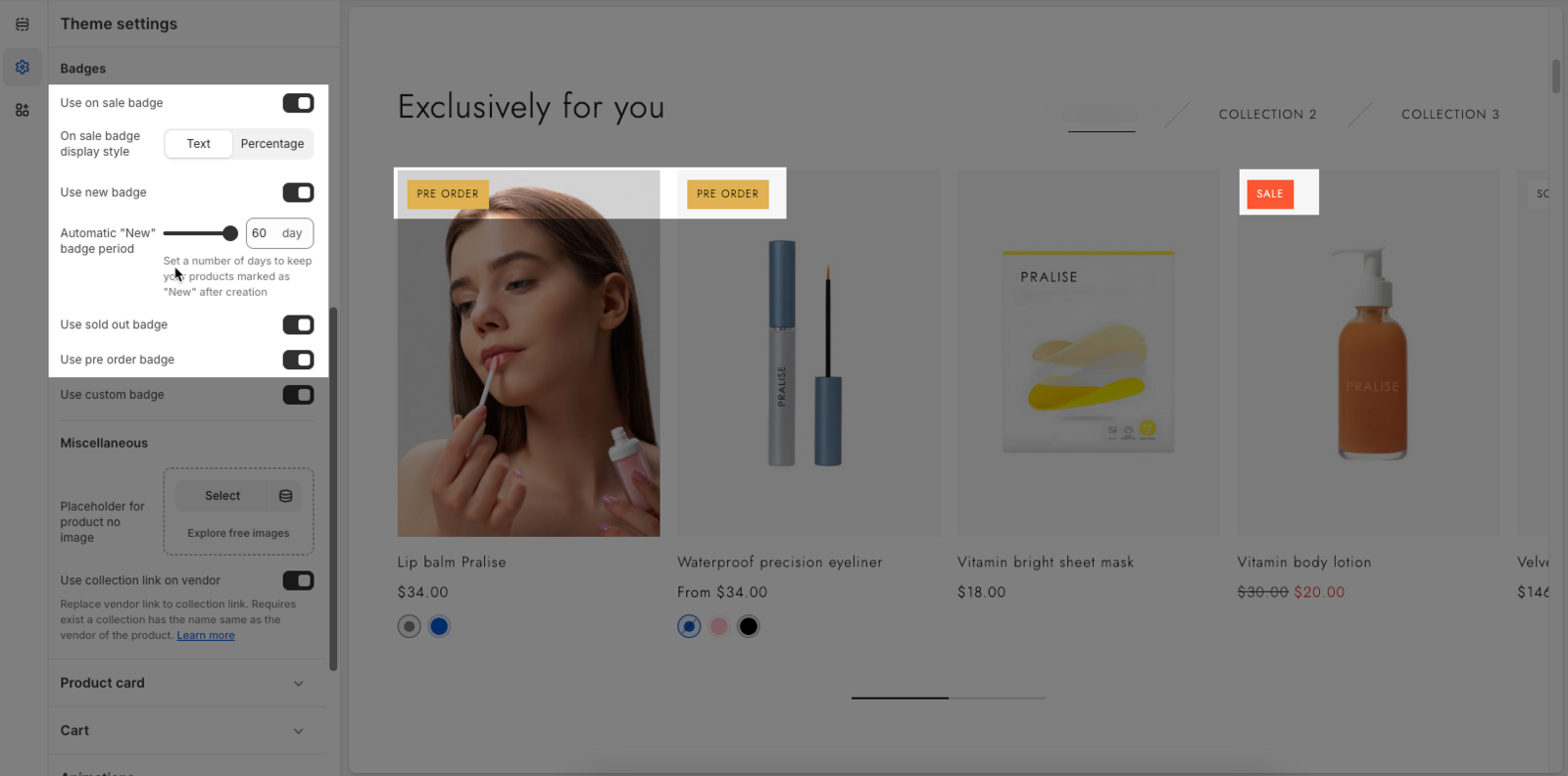 Use pre-order badge: Adds a “Pre Order” label to products available for pre-purchase.