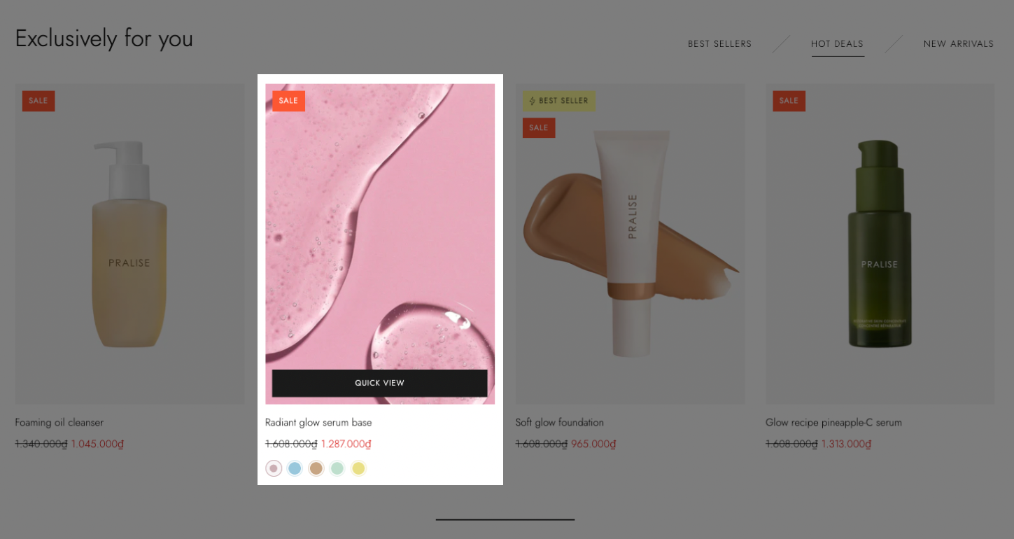 Show quickview: Toggle to enable or disable a quick view pop-up for a product.