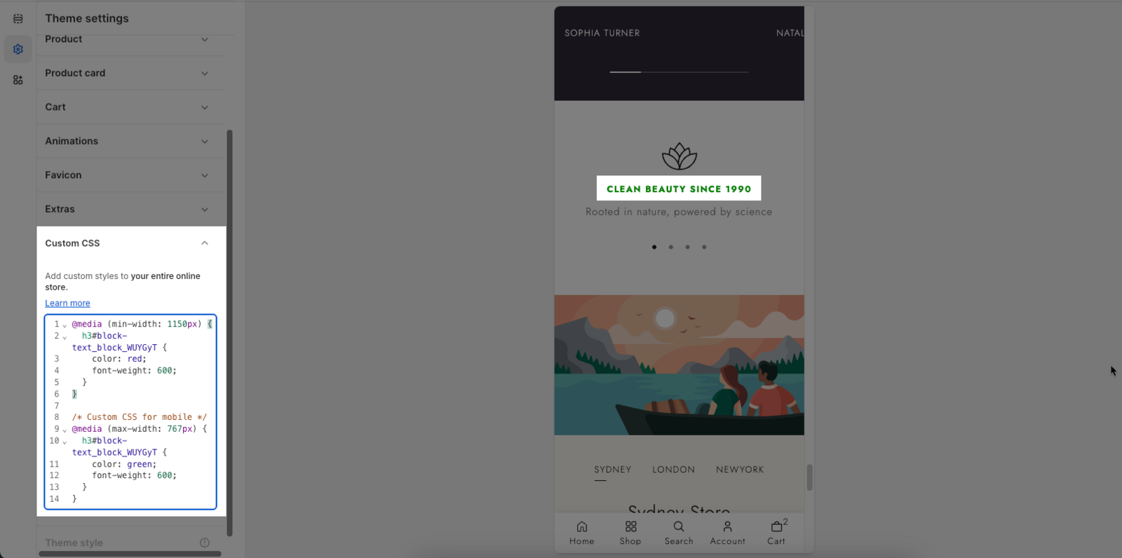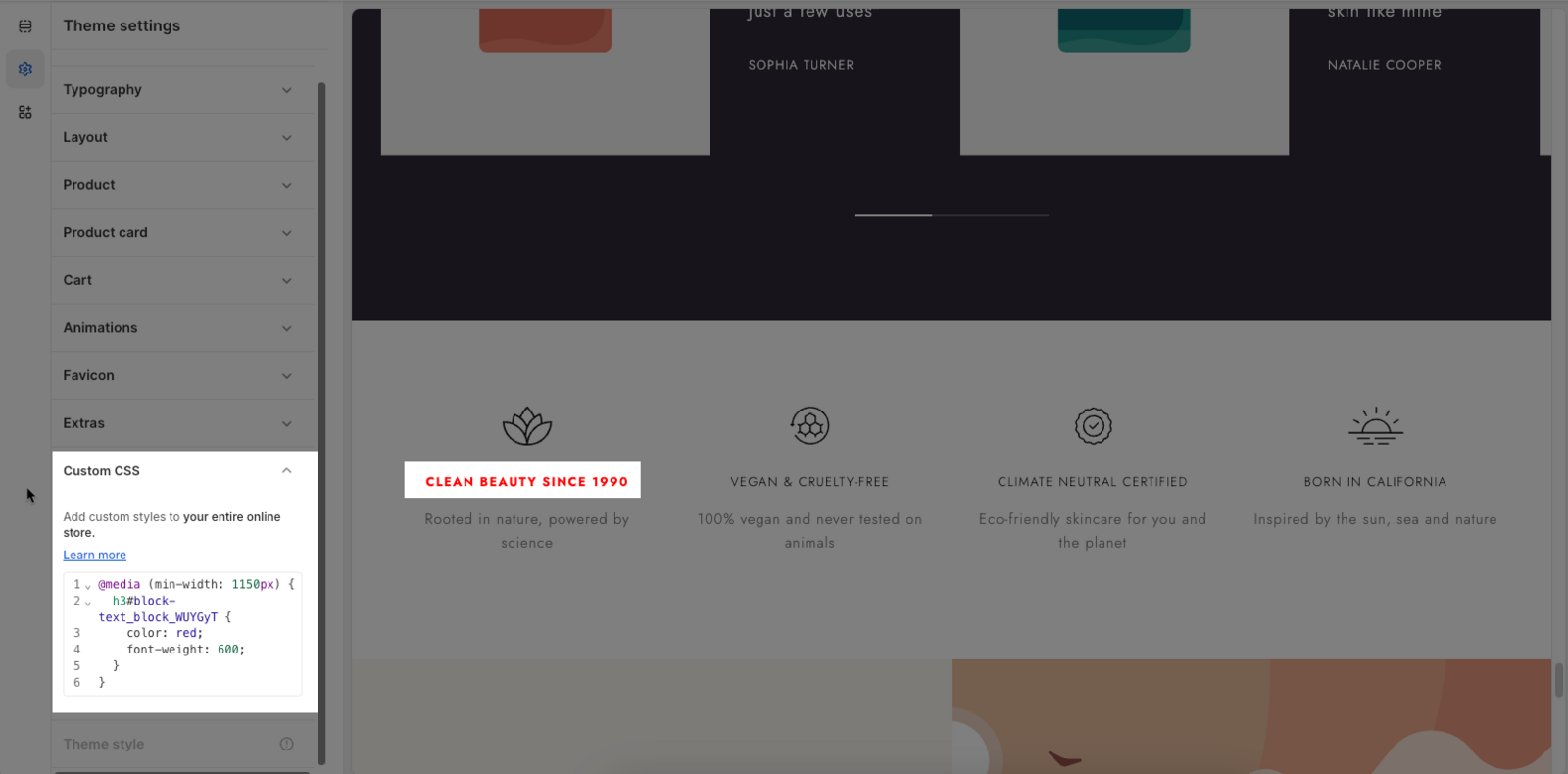 To use this section, from Theme editor > Theme settings > Custom CSS.