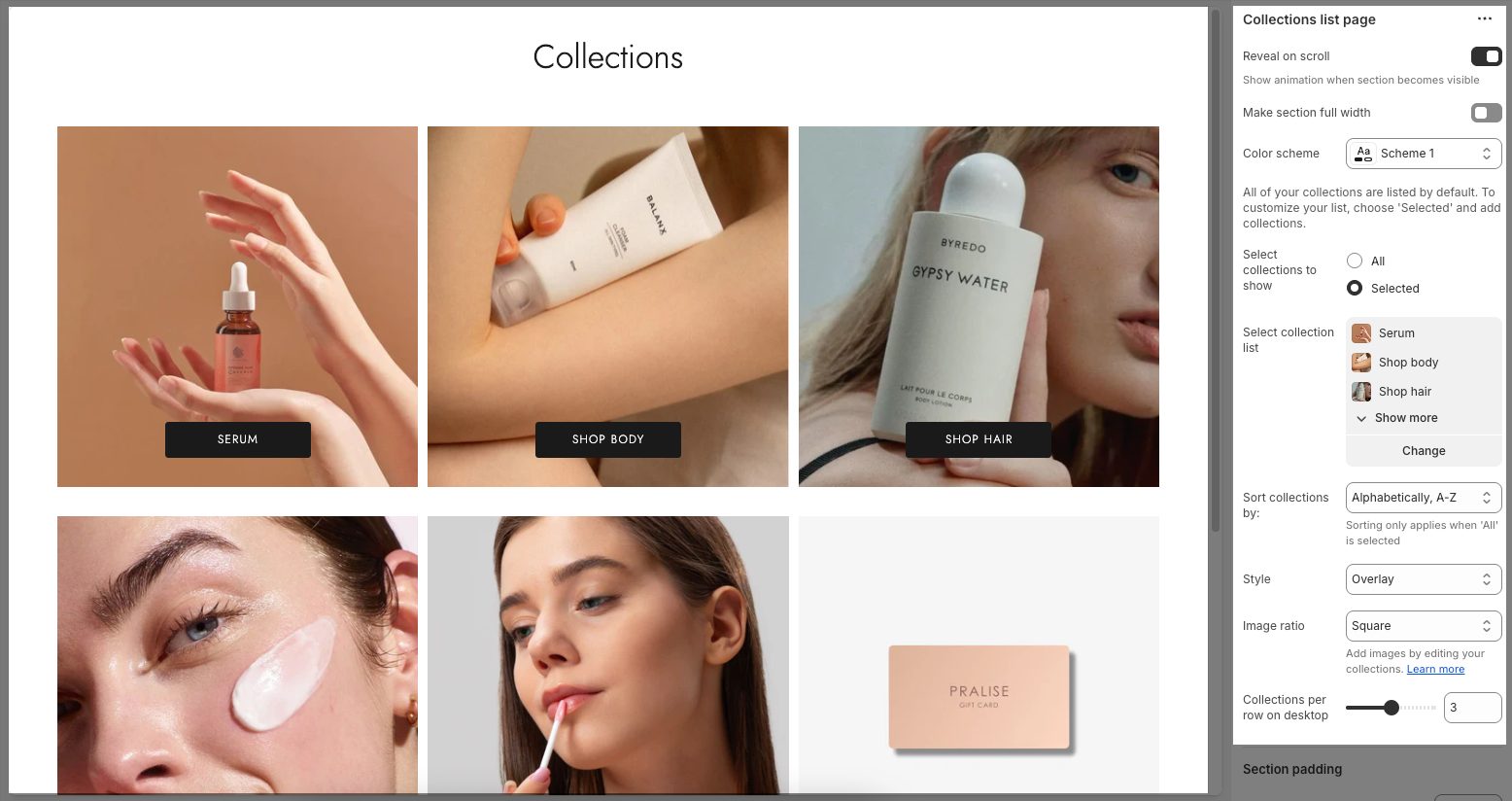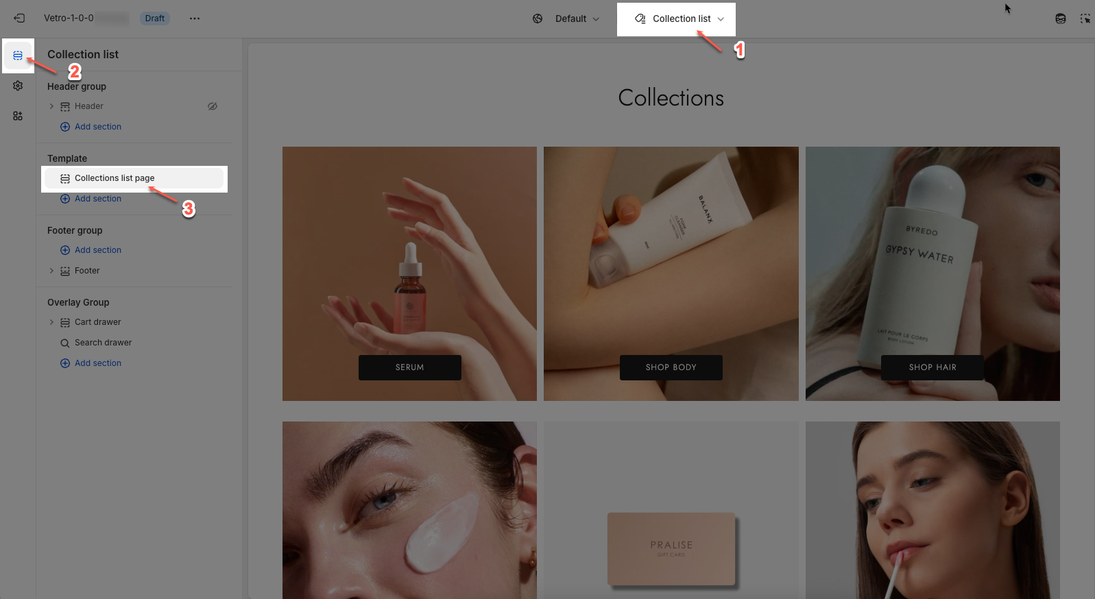Customizing the options of the collection list page allows you to adjust the appearance, arrangement, and display of the collections, thereby providing a better shopping experience for customers.