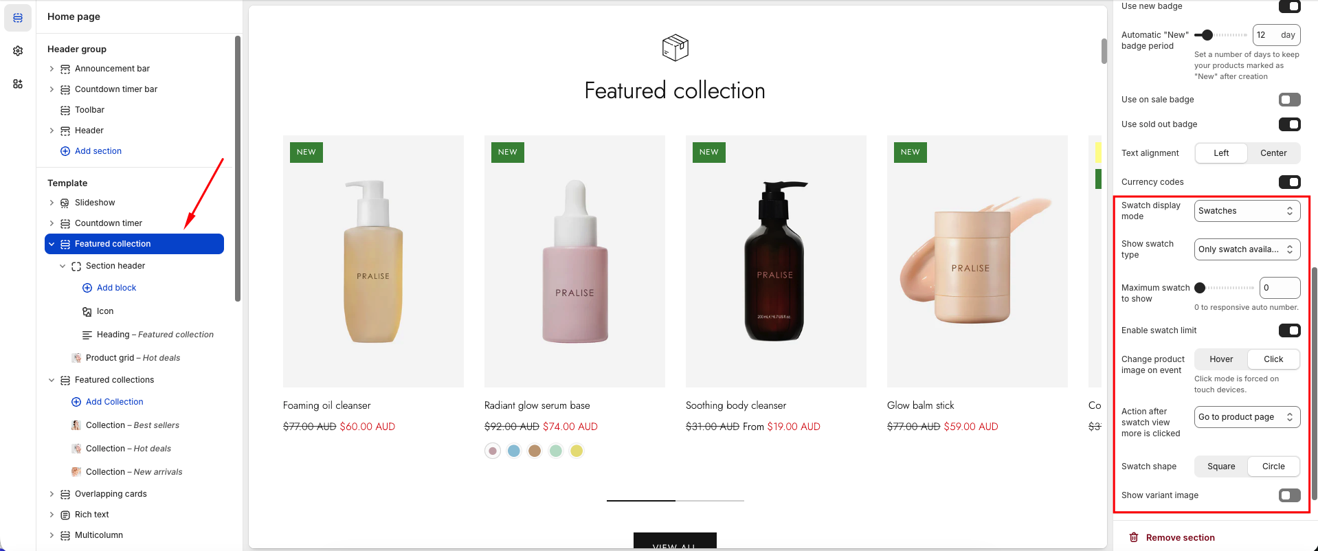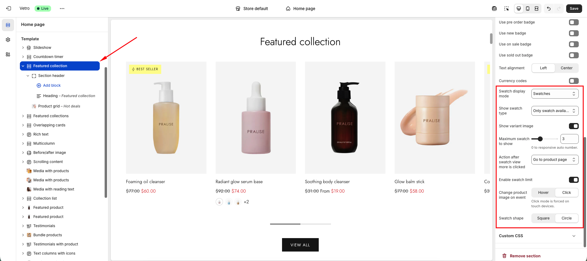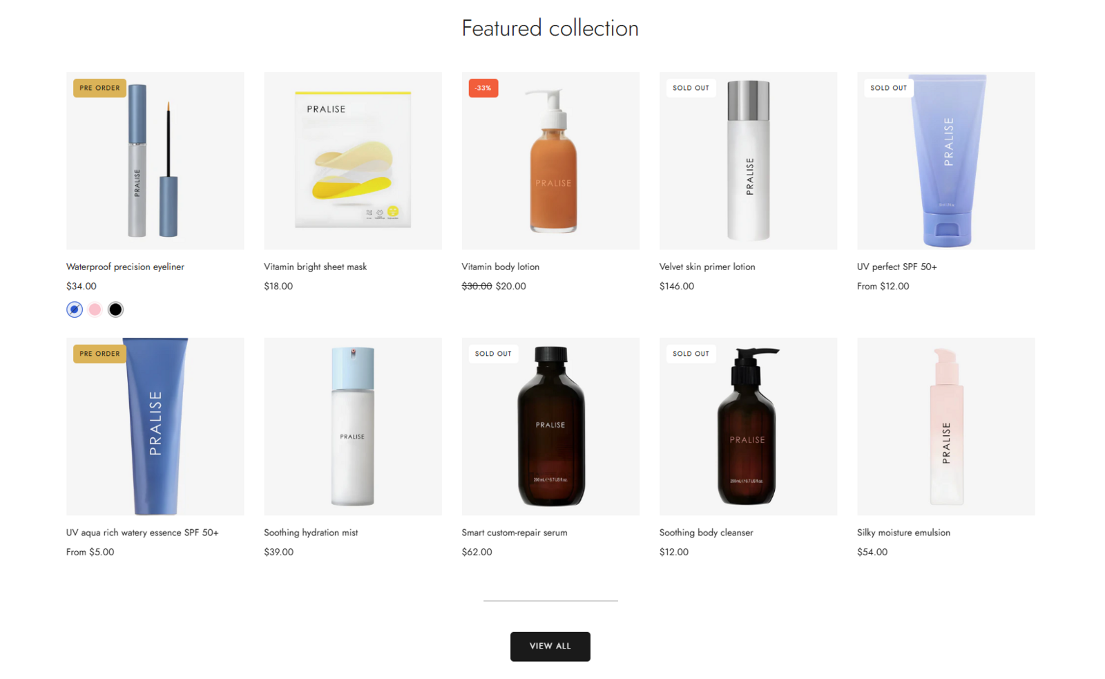 The Featured Collections section is a great way to highlight what matters most in your store — best sellers, new arrivals, or products on sale. It’s highly customizable, so you can design an eye-catching product display that helps customers quickly spot items they’ll love and enjoy a smoother, more pleasant shopping experience.