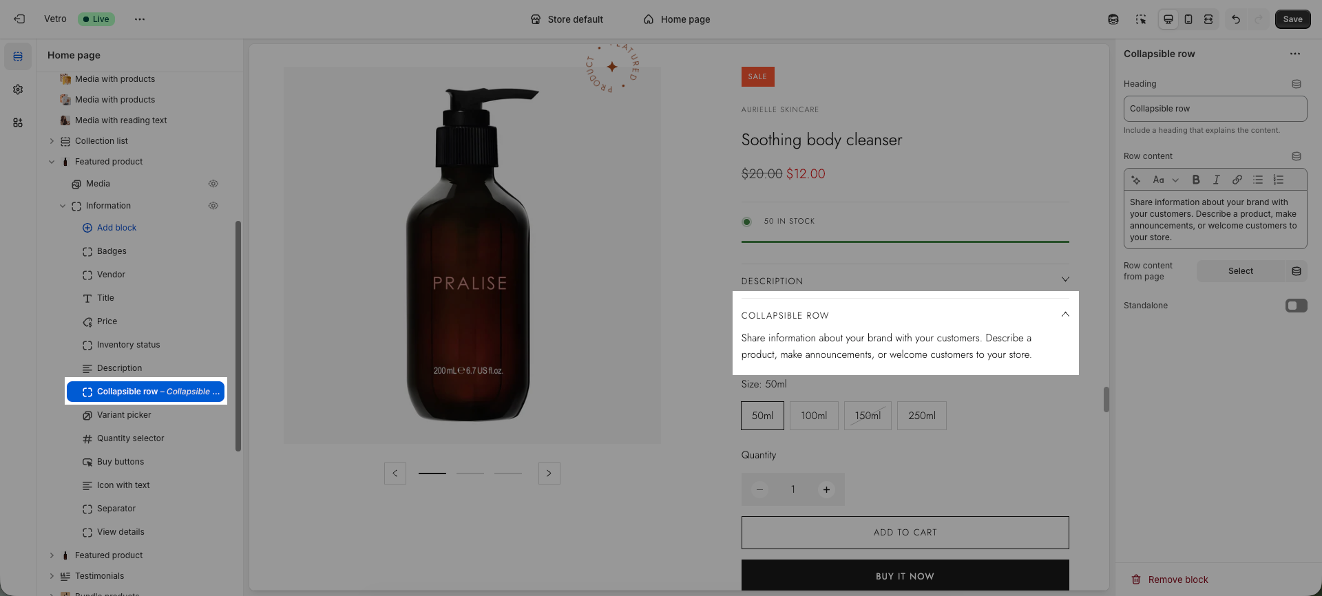 This block allows you to add accordion-style content to the product information column, helping you organize additional product details in a clean and user-friendly way.