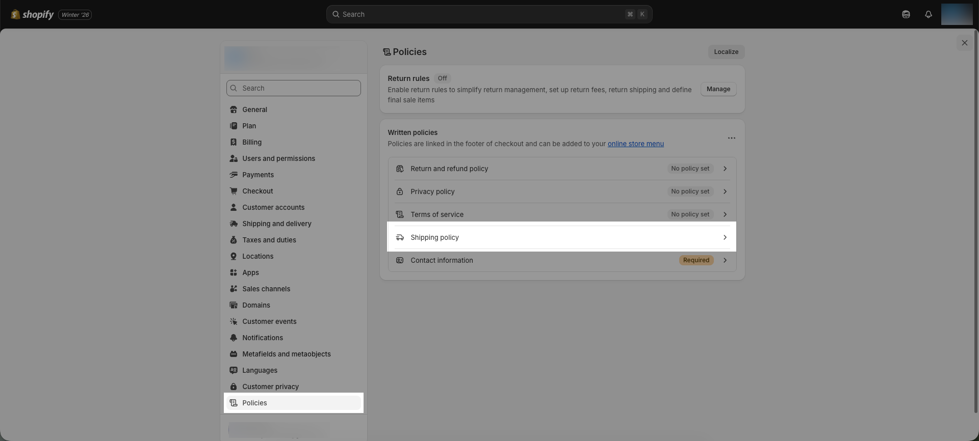 You will need to add a shipping policy in the Shopify settings for this block to work properly.