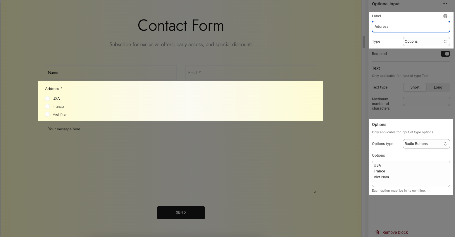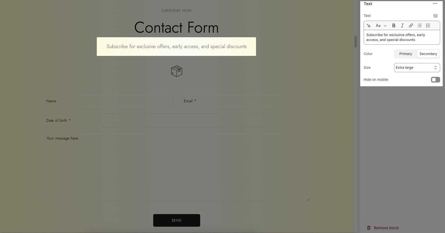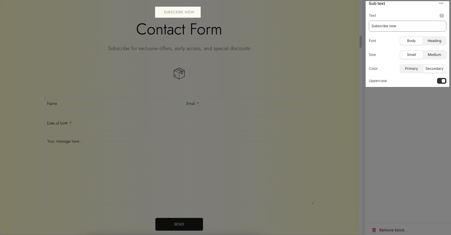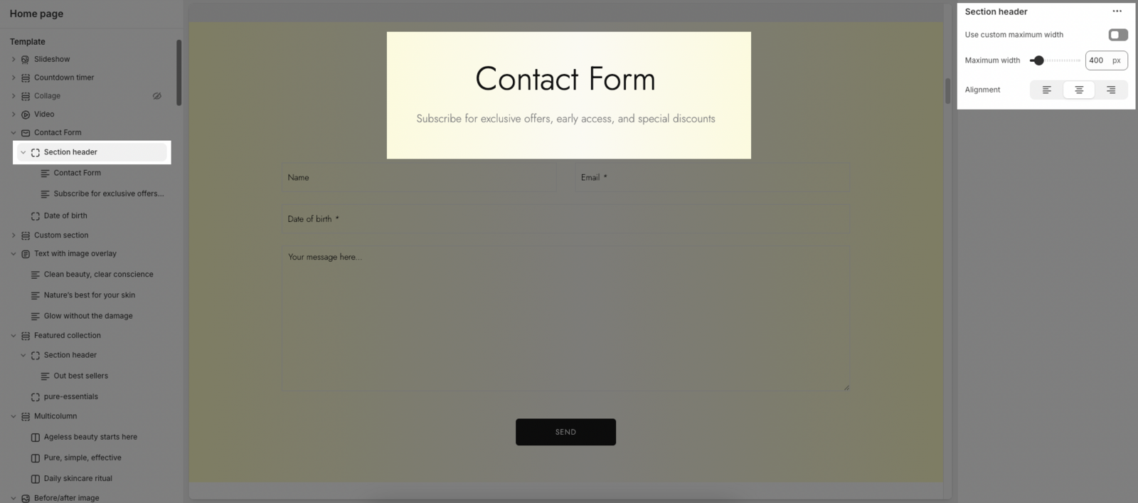 In this guide, you'll learn how to customize the Contact form section to match your brand and business goals.