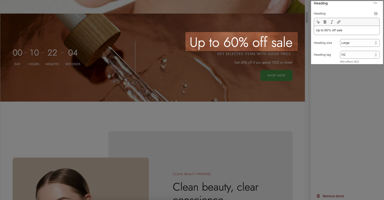 In this section, you'll learn how to customize the Countdown timer section to match your campaign.