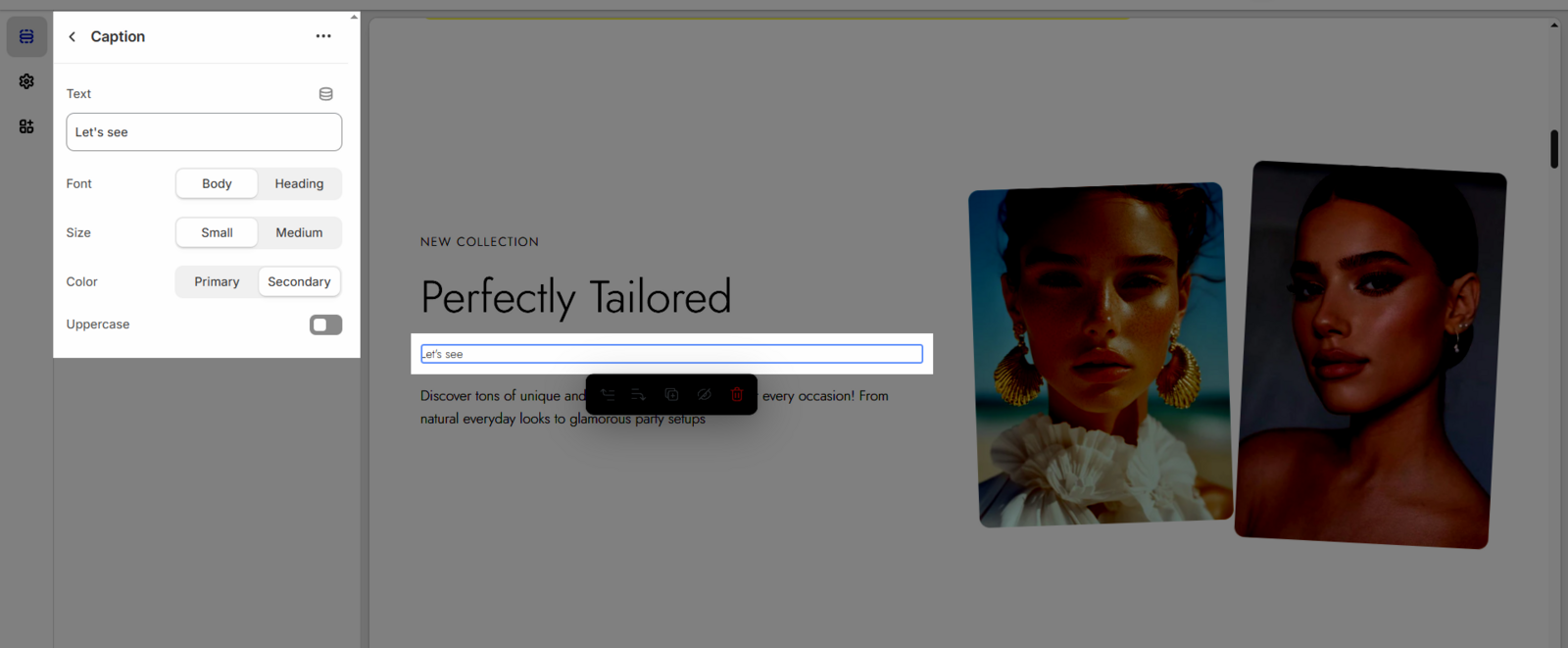 Once the Caption block is added, you can customize its settings in the left or right-hand sidebar (depending on your screen size)