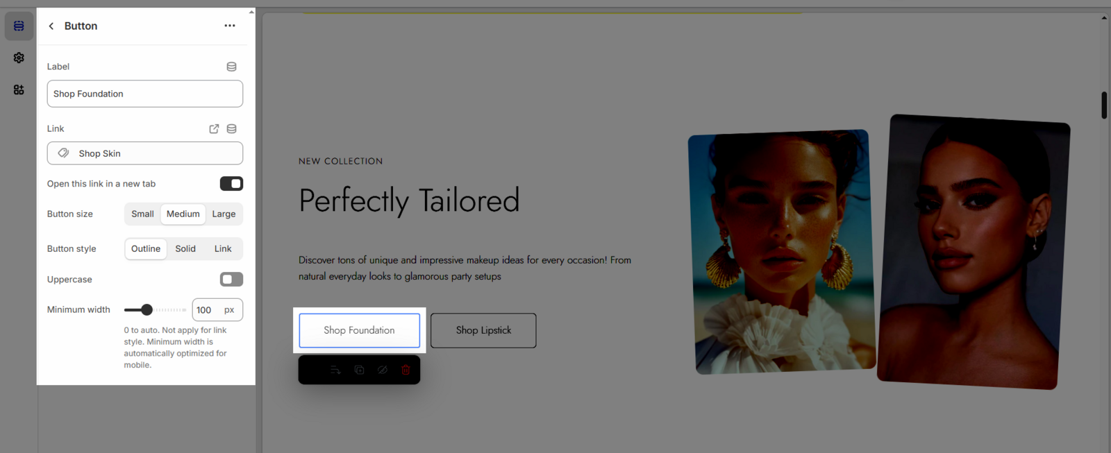 Link: Enter the URL linked when a user clicks the button, defining the destination of the action.
