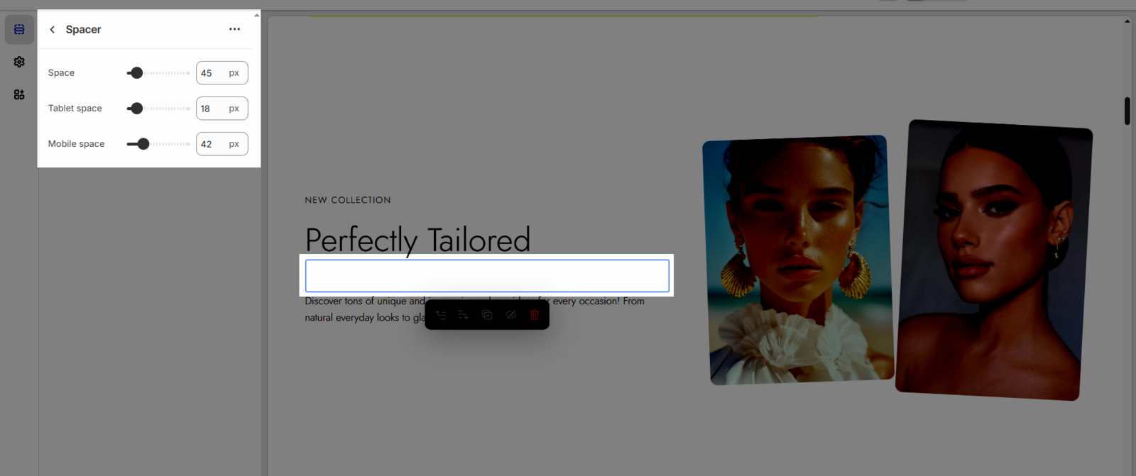 Once the Spacer block is added, you can customize its settings in the left or right-hand sidebar (depending on your screen size)