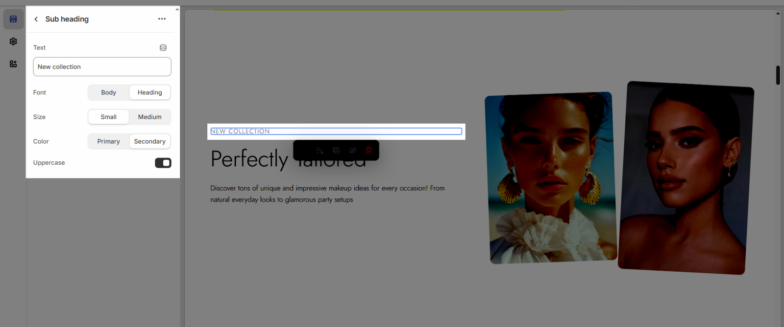 Once the Sub heading block is added, you can customize its settings in the left or right-hand sidebar (depending on your screen size)
