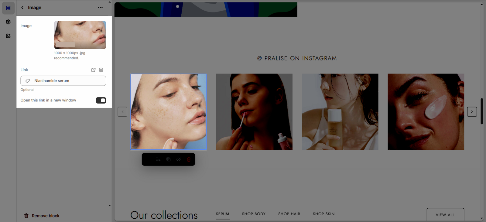 Once the Image block is added, you can customize its settings in the left or right-hand sidebar (depending on your screen size)