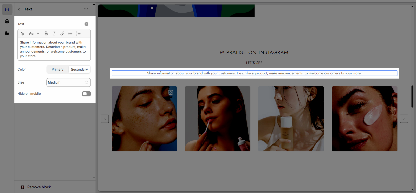 Once the Text block is added, you can customize its settings in the left or right-hand sidebar (depending on your screen size)
