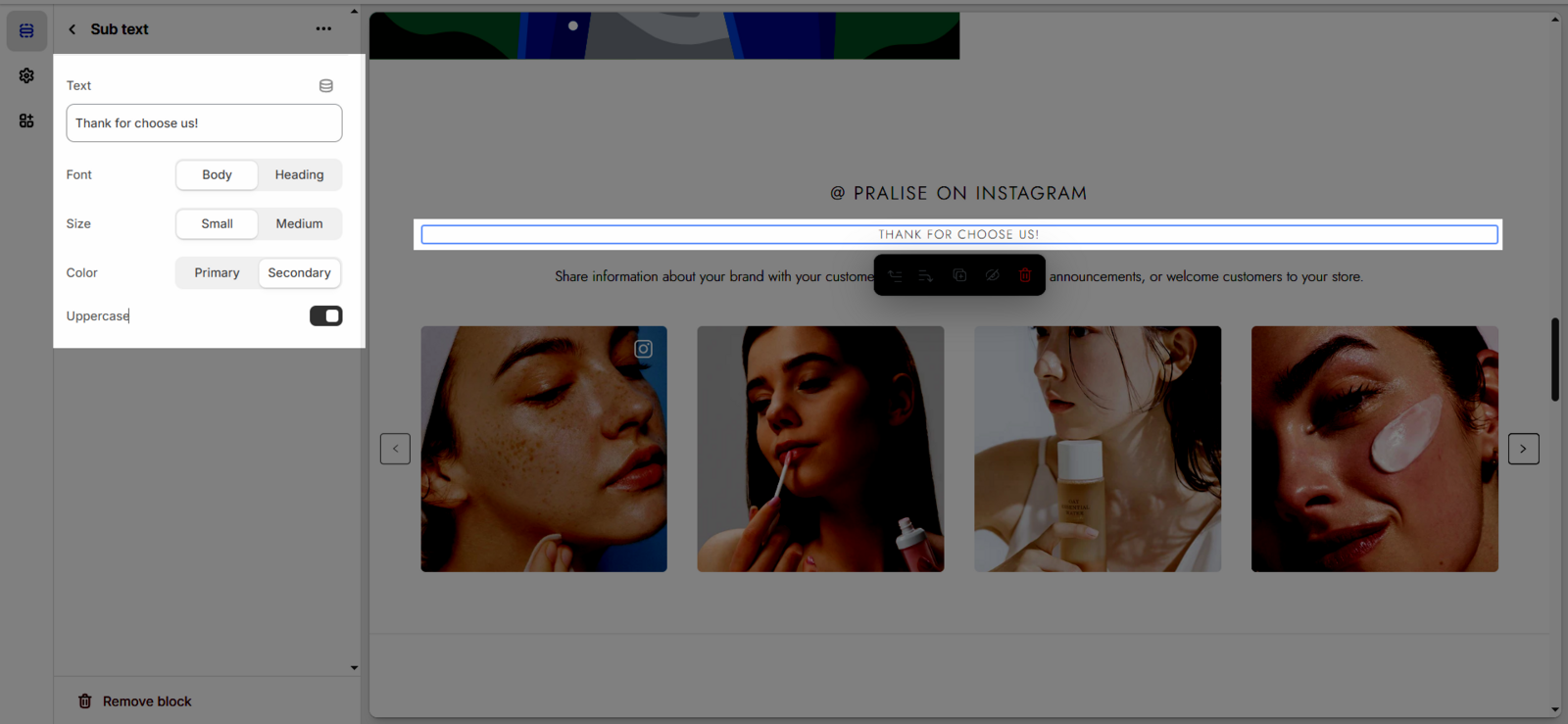 Once the Sub heading block is added, you can customize its settings in the left or right-hand sidebar (depending on your screen size)