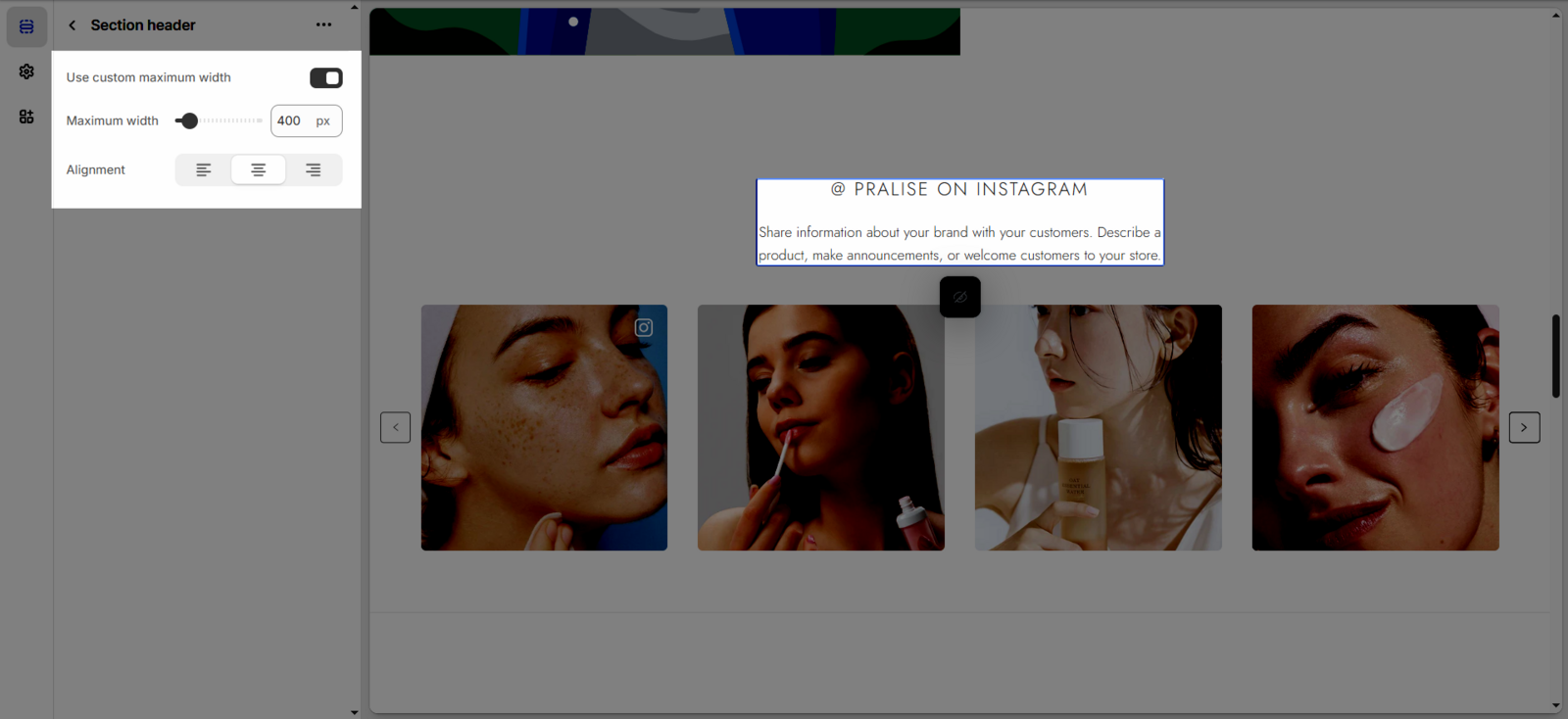 Alignment: Adjusts the alignment of content within the section (left, right, center), controlling the layout and creating visual balance.
